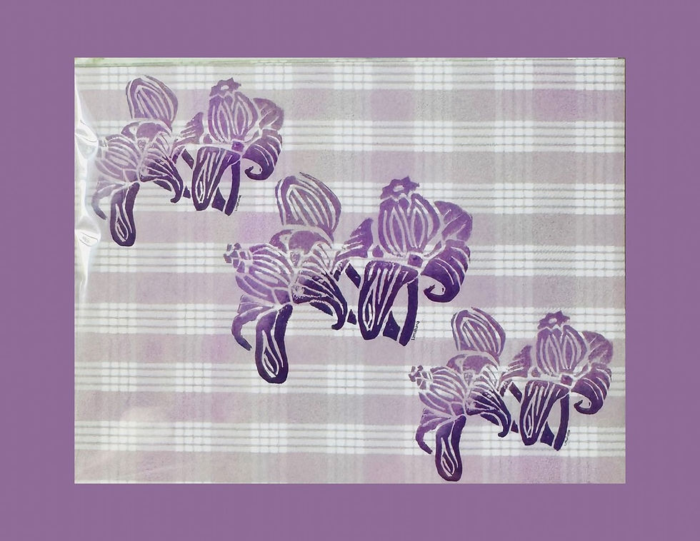 Purple Crown Flower on Lavender Palaka - 4-Pack Note Cards - Horizontal